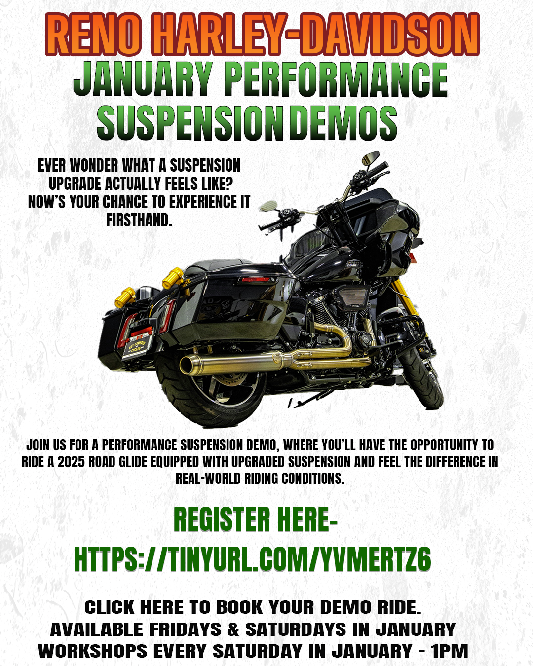 • Demo rides available every Friday & Saturday (weather dependent) so you can feel the difference for yourself.Whether you’re chasing better comfort on long rides or sharper handling in the twisties, this workshop is designed to help you get more out of your motorcycle.
